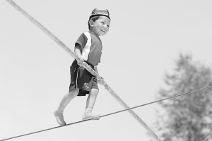 | 2002年6月29日,来自新疆和田、年仅3岁的维吾尔族儿童阿不力孜在乌鲁木齐市红山公园,向“年龄最小达瓦孜表演者吉尼斯世界纪录”发起挑战。 新华社发 |