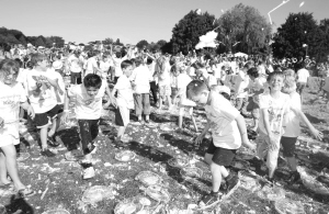 | 2009年5月31日,在英国小镇霍舍姆,251名儿童参加蛋奶冻馅饼大战,以期打破之前120人“参战”的吉尼斯世界纪录。 新华社发 |
