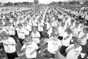 | 2007年2月21日,菲律宾学生在首都马尼拉一座公园里同时刷牙。当天,菲律宾3个城市的4万多名学生参加了这次刷牙活动,挑战此前由3.3万多名儿童在英国创造的世界纪录。 新华社发 |