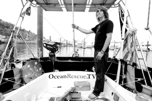 | 2009年5月22日,17岁的美国男孩扎克·森德兰站在他的单人帆船“无畏”号上。2008年6月14日,森德兰驾驶帆船“无畏”号离开美国加利福尼亚州,开始单人帆船环球航行,他是世界上最年轻的单人帆船环球航行者。新华社发 |
