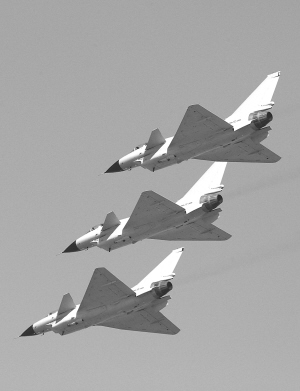 这是三架歼-10战机编队通场。 新华社记者 查春明 摄