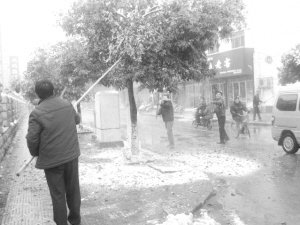 菩萨保佑:12日晚8点左右,我在中州路上的万果园买东西,看到市政的清扫车正在清理刮倒的树枝,也不知道他们工作到几点。