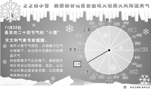 据新华社天津11月20日电(记者 周润健)22日将迎来农历二十四节气之一的“小雪”。天文专家提醒说,小雪节气前后,我国部分地区会出现大范围大风降温天气,公众要注意保暖,防止感冒等疾病的发生。