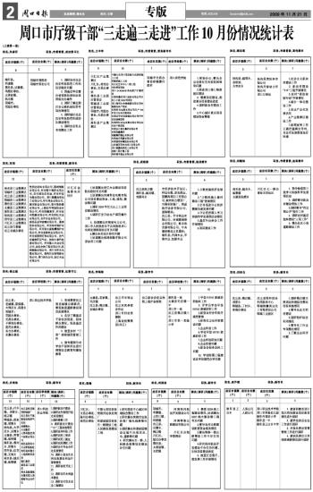 周口市厅级干部“三走遍三走进”工作10月份情况统计表