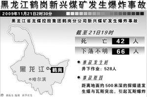 据新华社哈尔滨11月22日电(记者 梁冬 曹霁阳)在300多名救援队员近40个小时的连续奋战下,黑龙江新兴煤矿“11·21”瓦斯爆炸事故救援工作22日取得突破性进展,煤矿井下通风系统已全部畅通,部分通信、通电及运输也恢复正常,使救援工作明显增速。搜救人员已对井下90%的工作面进行了搜寻,共发现87名遇难者,仍有21人下落不明。