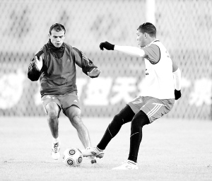 11月21日,黎巴嫩队球员在黄龙体育中心体育场参加训练。当日,黎巴嫩队在杭州进行最后一次赛前训练,22日,黎巴嫩队将在这里挑战中国队。