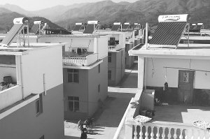 山村用上环保能源 江西赣州市石城县怡然居新村村舍屋顶安装的太阳能热水器(11月24日摄)。江西省赣州市石城县的怡然居新村是一个新农村建设过程中诞生的移民新村。这里道路旁安装着太阳能路灯,家家屋顶上安装了太阳能热水器,户户使用沼气生火做饭,是一个低排放、高科技的环保新村。 新华社发