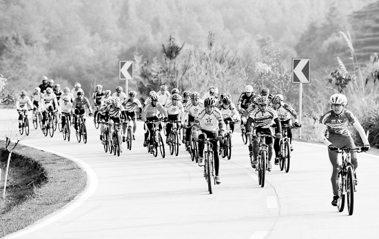 12月6日,选手们在团体赛中。当日,为期两天的2009环世界遗产地——武夷山景区公路自行车锦标赛在风光秀丽的福建武夷山落幕。 新华社记者 张国俊 摄