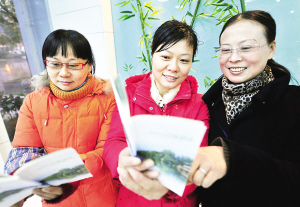 12月9日,扬州社区居民翻阅刚刚领到的《市民节能减排科学生活手册》。该书从衣、食、住、行等方面精选了约50种简单的“绿色低碳”生活方式,帮助居民在生活点滴中做到节能减排。 (新华社发)