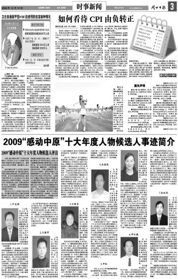 2009“感动中原”十大年度人物候选人事迹简介