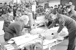 本报讯 (记者 张艳丽)“病人没有呼吸,心跳停止。”“立即进行胸外心脏按压、人工呼吸。”“静脉输液。”“准本插管。”在一个个急促的指令下,医生和护士相互配合,按照操作规范及标准有条不紊地对“伤者”实施“抢救”。很快,“病人”症状得到稳定,被送入重症监护室接受进一步“治疗”。