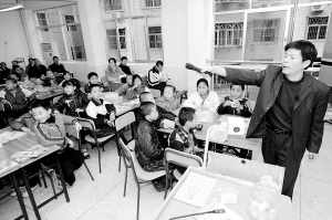 小学的“首席教师” 12月17日,福建省大田县城关第一小学校长徐明煦(右)在课堂上为学生讲解数学知识。