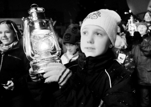 哥本哈根举行“地球一小时 哥本哈根之夜”活动 12月16日,在丹麦首都哥本哈根的市政广场,一名小女孩手举马灯参加“地球一小时 哥本哈根之夜”活动。该活动号召哥本哈根的民众熄灭不必要的耗电类照明工具一个小时,旨在提高人们对能源和环境问题的重视。