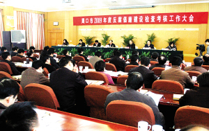 本报讯 (记者 吴继峰) 按照省委统一部署,省委检查考核组对我市2009年度反腐倡廉建设工作进行考核。昨日下午,全市2009年度反腐倡廉建设检查考核工作大会在周口举行。省政府副秘书长詹洪方出席大会并部署工作。省委检查考核组成员刘京州、周富强、刘达、张玉璞出席。