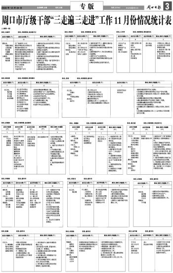 周口市厅级干部“三走遍三走进”工作11月份情况统计表