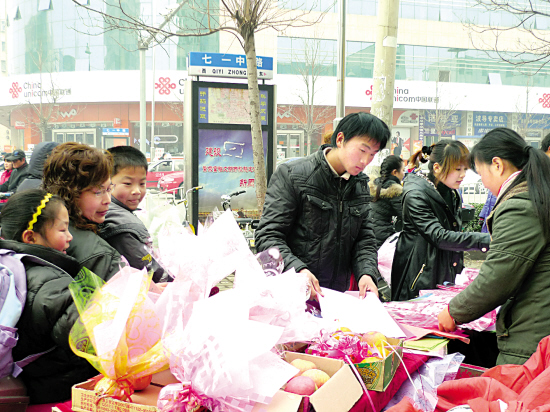 上图:昨日,市区到处洋溢着圣诞节的欢乐节日气氛。街头到处是购买平安果的市民。(记者 孙安平 实习生 薛懿轩 摄)