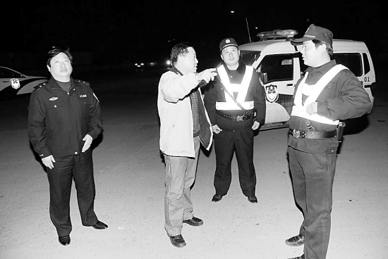 近日,项城市副市长、公安局长周运杰(左二)等夜查城区巡防执勤情况。为打击“两抢一盗”犯罪行为,维护城区治安大局稳定,从12月份开始,项城市公安局展开了民警城区大巡防行动。(魏康 杨光林 摄)