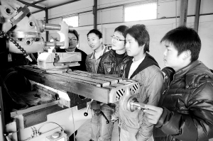 我市一些职业技术学校的创立和发展,不仅提高了劳动者的素质和技能水平,还实现了我市农村剩余劳动力转移。图为一些学员在机器前学习操作。