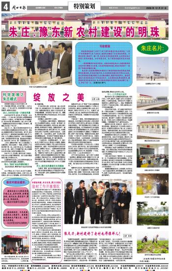 三、周口日报社派出记者采访团深入朱庄采访,整理、挖掘朱庄经验,印制《朱庄新貌》宣传折页,为朱庄新村树立外宣形象提供详实资料。