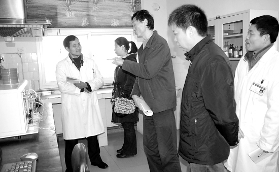 2009年12月28日,国家级计量复查换证评审组来到周口,对河南省水环境监测中心周口分中心进行了复查换证评审。图为评审组人员在检查水环境监测中心实验室环境。 (记者 王映摄)