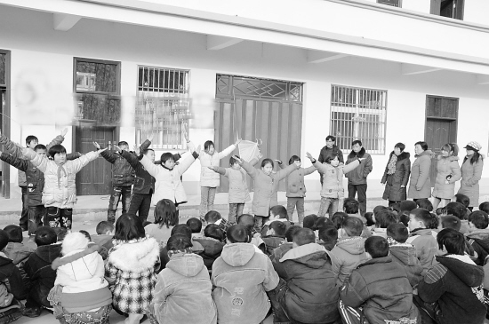 近日,西华县逍遥镇明月学校的孩子们为迎新年,连夜编排了一台丰富多彩的文艺节目,庆贺新年到来。 (明星 摄)