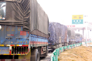 | 1月4日,车辆在江西宜春昌金高速入口处排起长龙。1月4日晨,江西省气象台发布大雾橙色预警信号。受大雾影响,当地多条高速公路封闭,造成部分车辆滞留。(邹海斌 摄) |