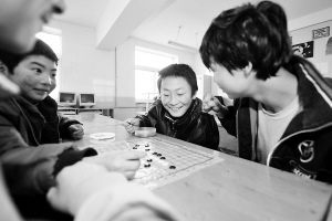 1月4日,被救助的青海籍流浪儿童沙玉山(右二)和同伴在教室里下五子棋。入冬以来,兰州市救助管理站为让流浪儿童有一个良好的学习环境,为孩子们开设了小课堂,由专门的老师为他们辅导文化课。据介绍,自2008年11月以来,兰州市救助站共救助流浪儿童100多名,其中大部分孩子已经在救助站短暂生活后回乡。 新华社记者 聂建江 摄