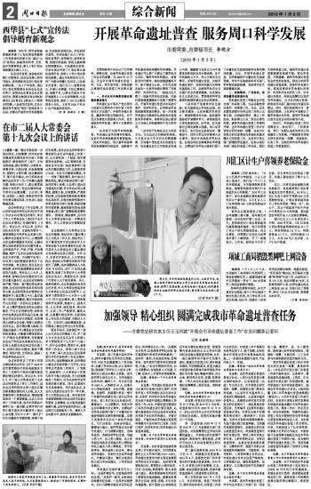 开展革命遗址普查 服务周口科学发展
