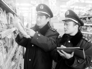 “双节”期间,为确保食品市场消费安全,太康县加大了对各类食品的抽样检测力度,积极组织执法人员对全县食品批发市场和商场、超市等经营的食品逐一进行抽样检测。截至目前,太康县工商局已检查食品400多种,抽检食品20大类50多个品种260多个批次。图为太康县工商局执法人员正在一超市抽样检测食品。(王慧星 张中杰 摄 )