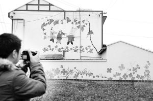 果园村有几十户村民从2009年秋收后就开始请当地画家登门入户,在房屋外墙、院墙上画年画,欢庆丰收,迎接新年,美化居住环境。