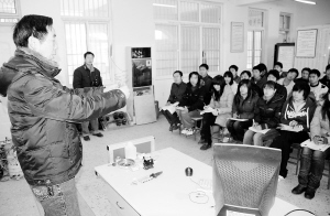 昨日,一职业学校授课现场。我市外出务工人员职业素质低、高技术人才匮乏,在一定程度上制约了劳务经济的发展,因此近年来,我市加快了职业教育示范基地建设步伐。这是实现我市从农民工输出大市向技能人才输出大市转变和人口大市向人力资源大市转变的重要举措。(记者 沈湛 摄)