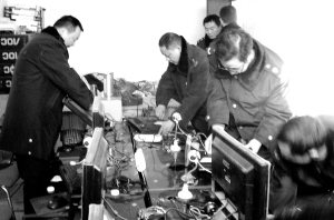 寒假将至,为了保障青少年上网安全,扶沟县工商局积极整顿网吧市场秩序。图为该局执法人员对无照经营网吧进行取缔。