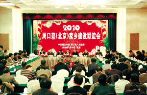 本报北京电 (记者 吴继峰)1月16日上午,市委、市政府在北京河南大厦举行周口籍(北京)家乡建设联谊会。近200名工作在首都各行各业、各条战线的周口籍同乡及在周口工作过的同志欢聚一堂,互叙乡情友情,共商发展大计。解放军第二炮兵原副政委程宝山、中共中央军委办公厅副主任曹育民、国家人口和计划生育委员会纪检组长勾清明、武警总队医学院院长王发强、解放军301总医院副政委何振喜、北京武警总队副政委李金星、北大方正集团董事长魏新、中国农业发展集团总经理郑清智等出席联谊会。