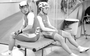 1月24日,中国选手张磊(左)和弟弟张淼在男子争先赛5-8名排位赛前休息。当日,在北京国际自盟场地自行车世界杯赛男子争先赛中,张磊、张淼这对亲兄弟同场角逐。最终,哥哥张磊获得第5名,弟弟张淼获得第8名。