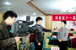 1月23日至30日,省十一届人大三次会议和省政协十届三次会议相继在郑州召开。其间,为切实做好有关宣传报道工作,全力营造良好舆论氛围,我市各新闻媒体均派出记者随代表团进行采访,及时让全市群众了解省“两会”的相关消息,取得了良好社会效果。图为周口电视台记者正在采访参会代表。
