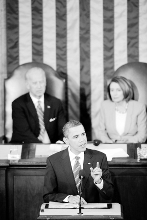 美国总统奥巴马27日晚在国会发表了他上任以来的首次国情咨文演讲。由于美国眼下失业率高企,不少民众面临巨大生活压力,奥巴马整个演讲以经济和民生议题为主,外交和安全议题退居其次。
