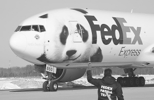 2月4日,深受美国人民喜爱的大熊猫“泰山”告别生活了4年半的华盛顿动物园,在杜勒斯国际机场乘坐“联邦熊猫快递”货运专机,踏上了前往中国四川熊猫基地的回家路。图①:大熊猫“泰山”被运上专机。图②:地勤人员指挥运载大熊猫“泰山”的专机。图③:一名小女孩为大熊猫“泰山”送别。