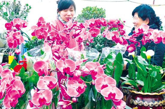 春节将至,我市花卉市场早已开始春节花卉的展示与销售。买点应节的年花装点家居或馈赠亲友,可为浓浓的春意增添一份娇艳,一份喜庆。(记者 孙安平摄)
