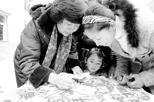 2月7日,在四川省映秀镇老街村,内蒙古剪纸艺人刘静兰(左)在教一位村民剪纸。连日来,文化部邀请30余名艺术家深入四川、甘肃、陕西地震灾区,开展“吉祥新春 温暖同行”送春联年画下基层活动,艺术家们以写春联、画年画、做剪纸等形式为当地群众送去新春的祝福。