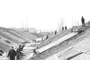 近日,工人们正在硬化沙河槐店灌区干渠护坡。沙河槐店灌区续建配套与节水改造项目计划总投资1.3亿元,分6年实施,其中2009年度工程投资规模为2500万元,建设渠道防渗衬砌8900米,渠道清淤1400米,新建、重建节制闸8座,重建生产桥25座,更新改造灌区管理房576.47平方米,首期工程将于今年3月底竣工,工程建成后,将改善灌溉面积10万亩,新增农业产值557万元。(记者 韦伟 实习生 张煜贞 摄)