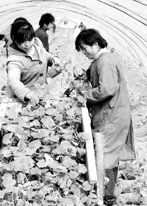 人勤春来早 近日,河南各地天气转暖,一些农民春节刚过就陆续下地忙起农活,为虎年有个好收成打基础。图为商丘市近郊农村的村民在蔬菜大棚内装卸蔬菜秧苗。