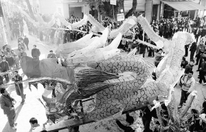 500米板凳长龙闹新春 2月20日,在江西省德兴市新岗山镇占才村,农民舞动板凳长龙在街头巡游。当日是农历正月初七,在地处偏远山区的占才村,500余名农民轮番舞动近500米长的农家板凳龙,走村串户拜年闹新春。 新华社发