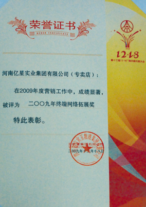 作为河南名酒典范,亿星商业副食公司始终以身作则,严把销售渠道质量关,不断创新经营思路,扩大销售网络,拓宽销售渠道,坚持顾客满意度至上和以品牌服务拉动消费群体的原则,围绕“精准定位、聚焦品牌、细分市场、优化结构、客户至上、强化服务”准则,走出一条白酒行业的“国美模式”之路,力争在3-5年时间内,在保证亿星名酒连锁专营健康发展的基础上,在全国自建或加盟建店100家,让亿星名酒领跑中原,走向全国,服务百姓,让消费者品鉴亿星绿色、健康、保真名酒,畅享优质生活。