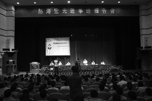 学海宏,使海宏的事迹深入人心,让海宏的精神继承发扬,是对海宏最好的纪念。郸城检察院组织拍摄了陈海宏先进事迹专题片,发动全县各界创作出千首怀念讴歌海宏的诗词,组成了陈海宏事迹报告团巡回演讲,创作出了报告文学,根据海宏同志的事迹改编成了小品和戏曲排练演出。他们把“学习陈海宏,为社会尽责,让人民满意”作为学习实践科学发展观活动的一项重要内容,在全院开展了学习心得交流会、演讲比赛,组织干警追思回忆和陈海宏相处的点滴往事,以及生活中闪烁着个人智慧和思想光芒的只言片语,收集整理出 7 万多字的追思录《我心目中的陈海宏》,引导干警在追忆中体会陈海宏对党、对人民、对工作、对生活的忠诚、热爱和执着,对比自己在思想上、学习上、工作上的差距和不足,许多干警写出了学习感言,纷纷表示要做好本职工作,展现个人风采,互帮互助,为构建和谐检察机关作贡献。海宏的精神激发了干警干事创业的积极性,业务骨干牵手新同志,具有计算机专长的干警义务为大家上起了电脑辅导课,司机业余当起了干警的驾驶教练。