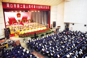 本报讯 (记者 吴继峰)深入贯彻落实科学发展观,奋力谱写追赶跨越新篇章。2月23日上午,周口市第二届人民代表大会第五次会议在人民会堂隆重开幕。来自全市各地的人大代表共聚一堂,共谋周口发展大计。