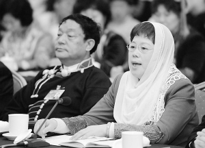 3月4日,全国政协委员洪梅香在全国政协十一届三次会议小组会上说:建议加大对民族地区科技骨干人才的支持力度,设立民族地区人才培养引进专项基金,支持民族地区引进和培养急需紧缺人才。 新华社记者 黄敬文 摄