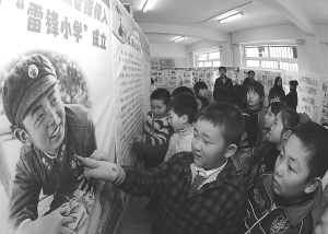 3月4日,学生们在参观雷锋事迹展览。近日,沈阳市大东区小东路第二小学的小学生以续写《雷锋日记》为主题,开展了续写《雷锋日记》、演讲雷锋故事、评比雷锋板报等多种形式的学习雷锋活动。