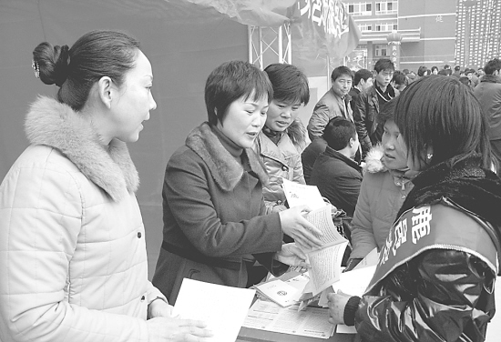 鹿邑县妇联多策并举,积极帮助老姐妹农民工就业。截至目前,2100多名“4050”老姐妹走上了劳动就业岗位。图为县妇联有关人员在为老姐妹介绍用工单位情况。 (胡洪涛 胡海云 摄)