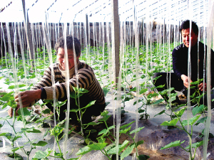 昨天中午,两位农民正在自家的蔬菜大棚内忙碌。春暖花开,我市农民抓住有利时机进行田间管理。(记者 孙安平 实习生 薛懿轩 摄)