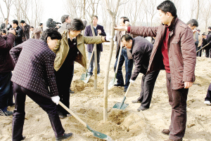 本报讯 (记者 李凤霞) 3月12日上午,市四大班子领导与市直机关干部到东新区文昌生态园参加义务植树活动。大家一起挥锨铲土,植树播绿。我市的全民义务植树、打造林业生态市工作由此进入高潮。